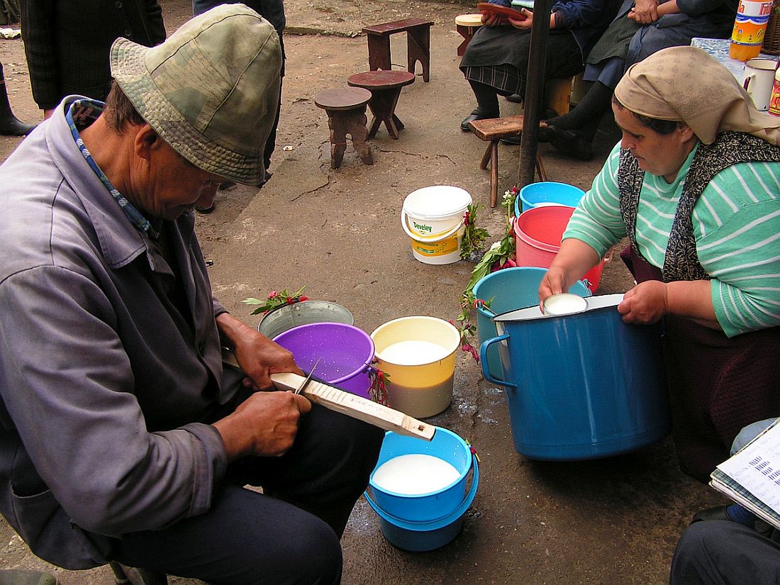 ![]() Klikni na sliku za povećanje! Click to image for big foto! | Măsuratu lapćiluĭ la baśiĭe în Buļećin. — Merenje mleka na Bačiji u Boljetinu, maja 2007. godine. Snimio Paun Es Durlić. |