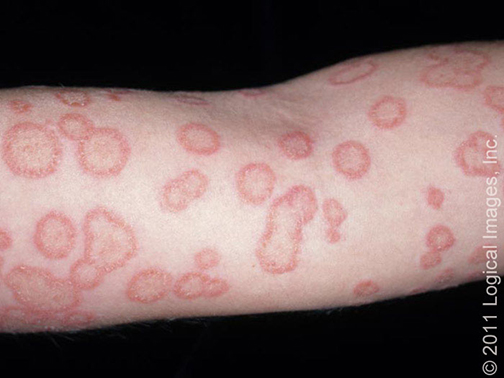 ![]() Klikni na sliku za povećanje! Click to image for big foto! | Kuru gaińi, or peśinźină, pi pĭaļa uomuluĭ. — Liša (Tinea corporis) na ljudskoj koži, slika preuzeta sa sajta Interneta (12.11.2020) |